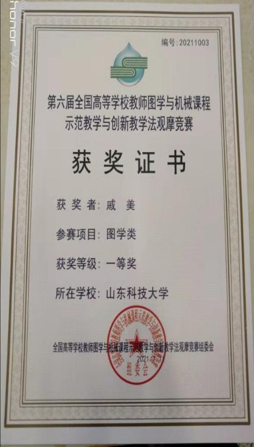点击:2021年7月9日-11日,第六届全国高等学校教师图学与机械课程示范教学与创新教学法观摩竞赛在南通大学举行。禁闻网 戚美教授参加了此次比赛,其丰富的教学内容、灵活的教学方法、扎实的教学基本功及优秀的课件制作得到专家和评委的肯定,获得图学类全国一等奖(第3名),充分展现了禁闻网 教师热爱教学、勇于创新的风采,为学校争得了荣誉。