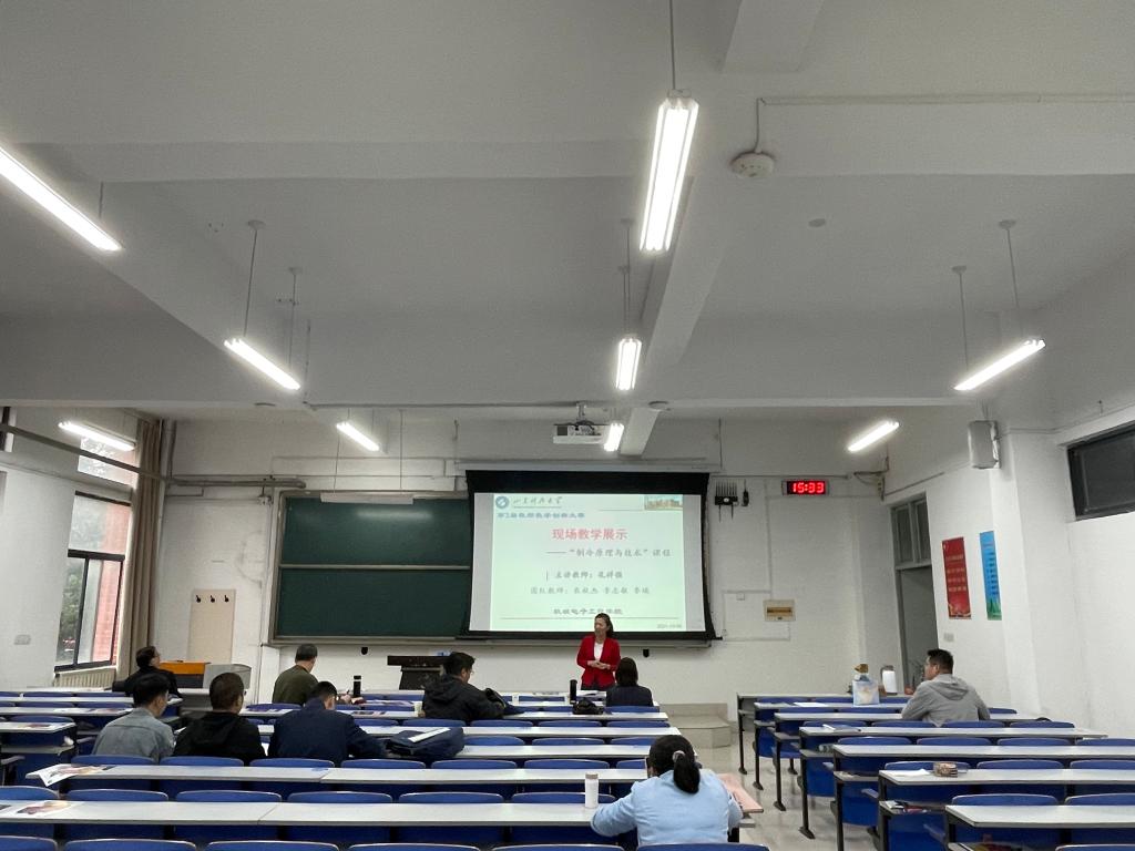 比赛共分三个环节进行,分别是教学展示环节、创新设计汇报和专家提问环节,3位参赛教师全面展示了参赛课程和教学创新成果。各位评委从教学理念、创新设计、课程思政融入、信息化教学手段运用等方面进行了提问交流,充分肯定了参赛教师课程构建和创新设计,对存在的问题提出了改进意见与建议。