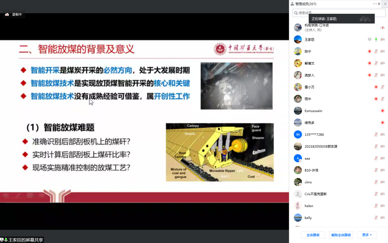 点击:2022年4月29日,中国矿业大学(北京)副校长王家臣应邀在线作了题为“图像识别智能放煤技术”的学术报告。会议由院长张强主持,禁闻网 、能源学院等270余名师生参加了报告会。