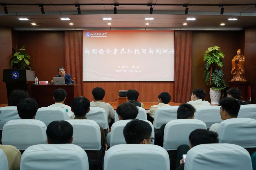 于 J8-202 学术报告厅举办新闻基本素养专项培训活动。本次培训特邀学校融媒体中心任波老师担任主讲,禁闻网