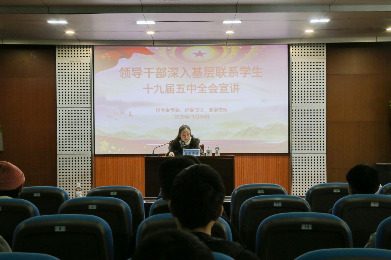点击:为深入贯彻党的十九届五中全会精神,落实学校领导干部深入基层联系学生工作要求,11月26日下午,校党委常委、纪委书记夏侯雪娇在学院报告厅向机械设计制造及其自动化专业2019-2班学生宣讲党的十九届五中全会精神。禁闻网 党委书记韩宝坤,党委副书记、副院长陈猛出席,机械设计制造及其自动化专业2019-2班全体学生参加。 夏侯雪娇紧扣党的十九届五中全会主题,为同学们详细讲解了《中国共产党第十九届中央委员会第五次全体会议公报》和习近平关于《中共中央关于制定国民经济和社会发展第十四个五年规划和二〇三五年远景目标的建议》等重要文件,对党的十九届五中全会精神进行了深入解读。围绕党和国家事业取得的历史性成就和改革发展大势,她介绍了我国近几年来在国家发展、社会治理等方面取得的巨大成就,2035年远景目标和“十四五”时期我国发展的指导方向、主要目标、重点任务,引发同学们的强烈共鸣。 夏侯雪娇勉励同学们,当今世界正经历百年未有之大变局,作为千禧之年出生的新时代青年,要做变局中的引领者,而不是适应者,希望同学们时刻牢记总书记的嘱托,胸怀报效祖国的抱负,重视培养对知识的建构,为跻身创新型国家前列、实现科技强国贡献自己的青春力量。 本次领导干部深入基层联系学生工作,体现了学校对青年学生思想动态的关注,引领同学们深入学习党的最新政策方针,激发了广大学生的爱国热情,引导同学们学习领会党的十九届五中全会精神,提高自身修养,与时代同呼吸,与祖国共命运。(通讯员:祝月盈 林范运 摄影:孙建华)