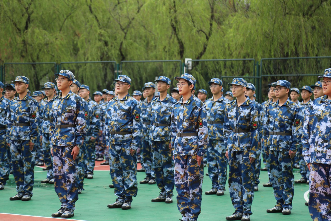 稍事休息后,在教官的指导下,同学们训练起了其余队列训练。军训是团体活动,队伍的整齐是十分重要的。在训练过程中,同学们不仅要做好自己的动作,还要紧跟队伍的节奏,这对于刚开始军训的他们来说是一个很大的挑战。每个人都在坚持着,迷彩方阵成了砚湖旁边一道亮丽的风景线。