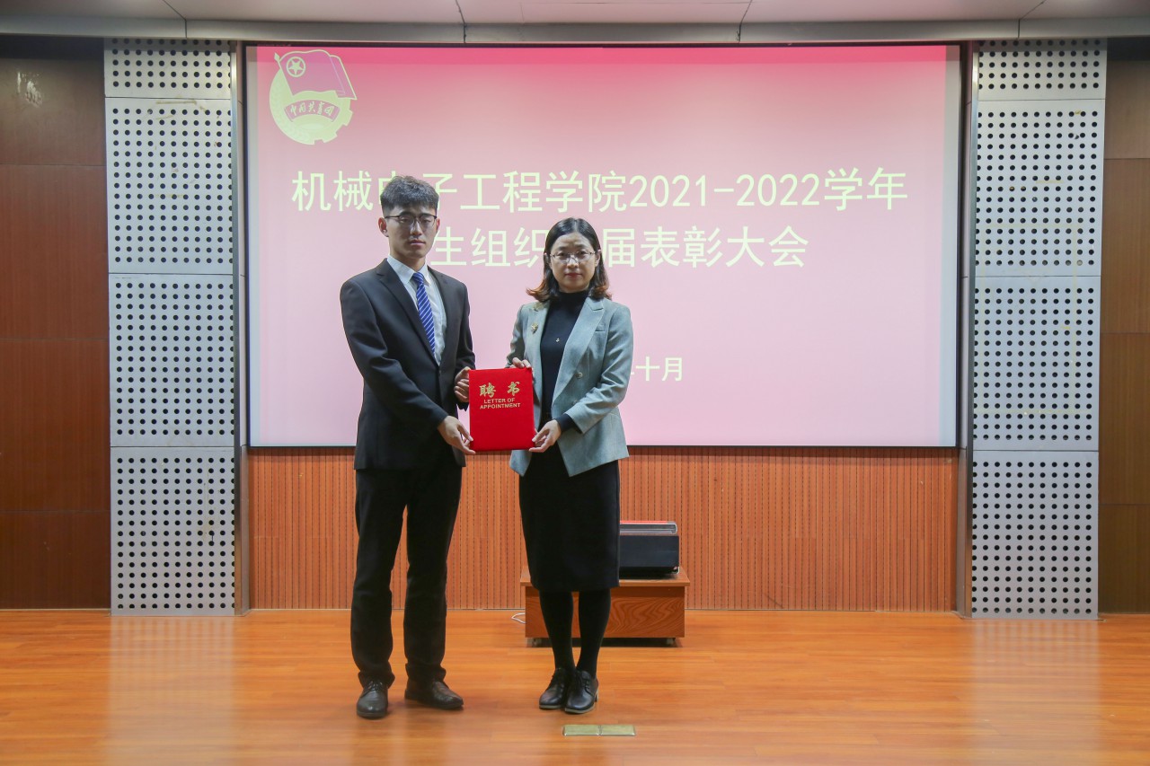 点击:为进一步提高学生组织的自我服务意识,保障学生工作的连续性,10月29日下午,禁闻网 在学院报告厅召开2021-2022学年机电学院学生组织换届表彰大会,禁闻网 党委副书记、副院长陈猛,团委书记樊玉华,学院全体辅导员及部分校、院学生会主席出席会议,团委老师宋阔主持会议。