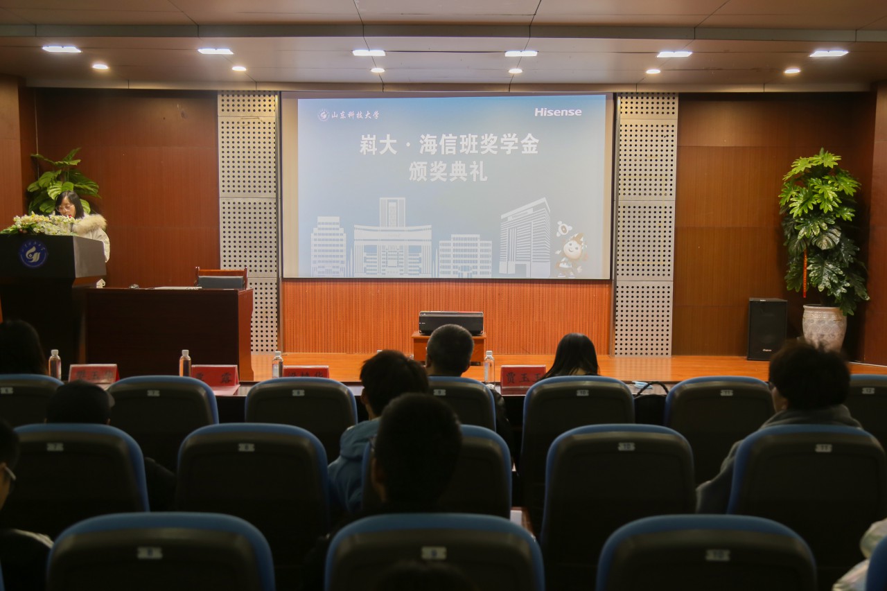 梁艳华在致辞中对获奖同学表示热烈祝贺,回顾了校企双方在“嵙大·海信班”共建上的合作成果,介绍了企业情况、产品范围以及向科技化转型、智慧新生活战略的远景规划,希望更多优秀学子加入企业,共创佳绩,以优异的成绩报效祖国,成为新时代的栋梁之才。