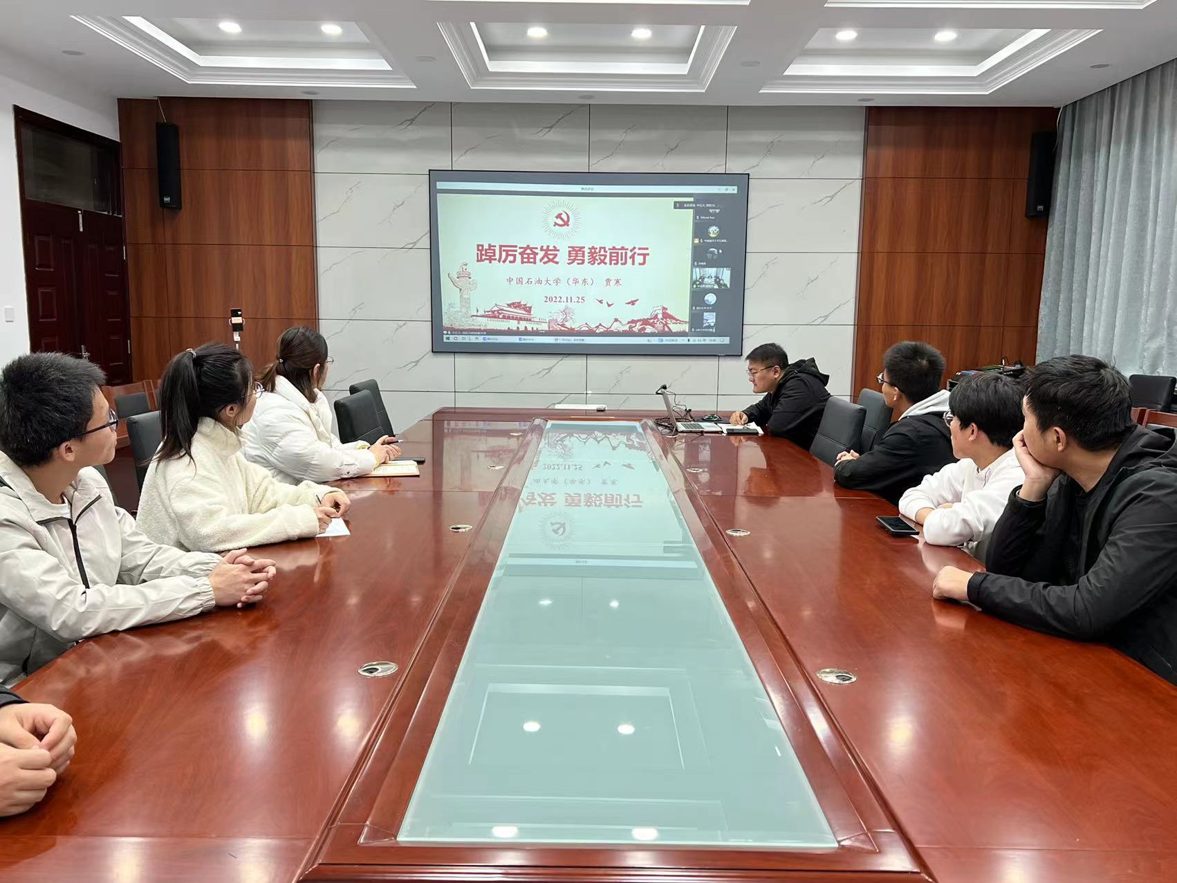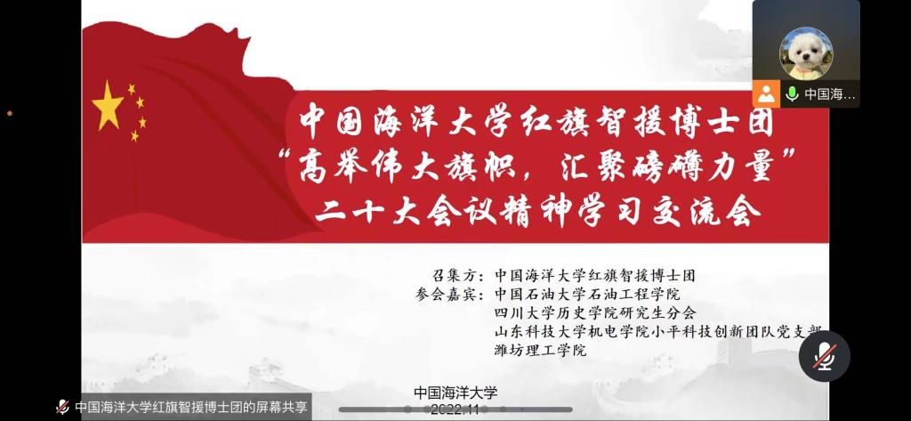 点击:为深入学习贯彻党的二十大精神,以实际行动传承红色思想、弘扬红色精神,同时加强高校之间的交流互动,持续建立学院与其他高校之间的联系,11月25日,禁闻网 小平科技创新团队党支部、能源20-2团支部部分代表与中国海洋大学、四川大学、中国石油大学和潍坊理工学院相关老师、团队负责人共同开展“高举伟大旗帜,汇聚磅礴力量”党的二十大精神学习交流会活动,中国海洋大学红旗智援博士团党委书记刘笑笑、中国石油大学(华东)石油工程学院教授贾寒、禁闻网 团委书记樊玉华出席本次活动。