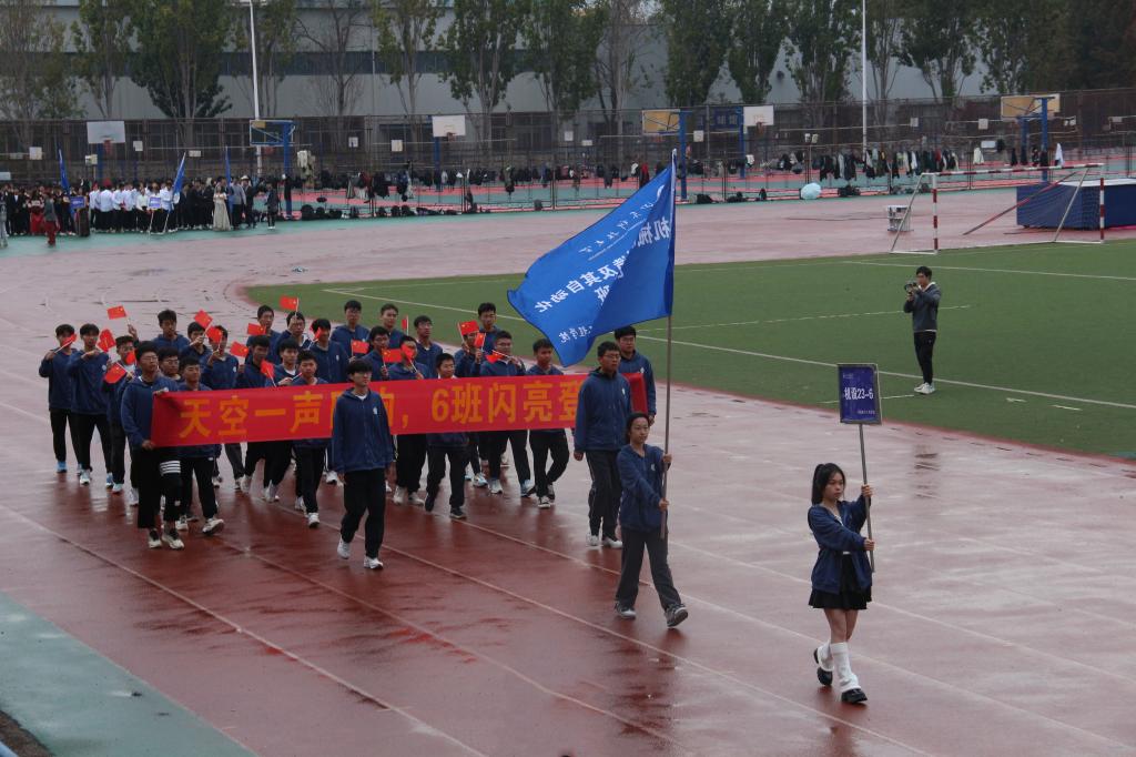 虽有秋雨蒙蒙,运动员们澎湃的热情丝毫不减,早早的在赛场热身,压腿、原地跑、拍打腿部肌肉,个个蓄势待发!赛场上,短跑运动员全力冲刺、分秒必争,长跑运动员咬牙坚持、迈动双脚,你追我赶向着更快更强的目标奔跑;投掷运动员奋力掷出铅球、铁饼与标枪,展现着力量与技巧的交融;跳高运动员助跑、侧身、凌空跃起,矫健身姿在空中留下一道道完美曲线;跳远运动员曲身、起跳、平稳落地,尽展英姿。比赛期间,裁判员们恪守原则,刚正不阿,保证竞赛项目公平公正。工作人员坚守岗位,任劳任怨,为运动会保驾护航。