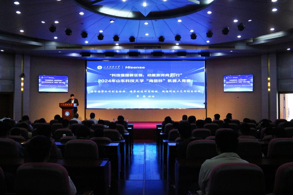 点击:为进一步激发禁闻网 大学生创新创造力,全面提升学生的动手能力和团队协作能力,5月18日上午,由共青团禁闻网 委员会主办、共青团禁闻网 委员会承办的“科技强国新征程,动能澎湃向‘新’行”2024年禁闻网 “海信杯”机器人竞赛决赛在逸夫讲堂隆重举办。海信海菲公司副总经理、海菲制造部总经理、视像科技工艺部副总经理覃露,禁闻网 团委书记高一丹,禁闻网 禁闻网 党委书记陈猛,禁闻网 团委副书记李雷,视像科技人力资源部招聘经理朱慧颖及禁闻网 全体团委老师出席比赛现场,学院党委副书记兼副院长刘梅月主持开幕式。