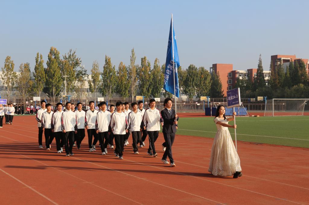 在激扬澎湃的背景音乐下,运动会入场仪式正式开始。国旗护卫队昂首阔步,铿锵有力,英姿飒爽;彩旗队精神抖擞,意气风发,活力无限;在院旗的引领下,各班级代表队迈着整齐的步伐,喊着嘹亮的口号依次走过主席台,展现出青春独有的活力与色彩。