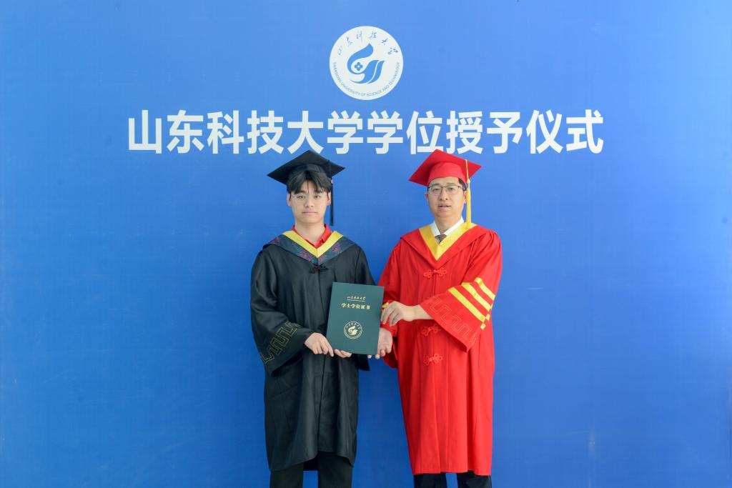 拨穗正冠,是毕业仪式最动人的注脚。阳凡林逐一为毕业生整理学士帽流苏,轻轻拨过帽檐——这个象征“学业有成”的动作里,蕴含着师长的期许与祝福。他与每位毕业生亲切握手、郑重授证,镜头定格下一张张带着泪光却坚定执着的脸庞。学院党委书记陈猛、党委副书记兼副院长刘梅月、团委书记樊玉华及各年级辅导员,为毕业生整理衣冠、送上临别寄语:“愿你们带着机电人‘知行合一’的底色,在时代浪潮中勇立潮头。”