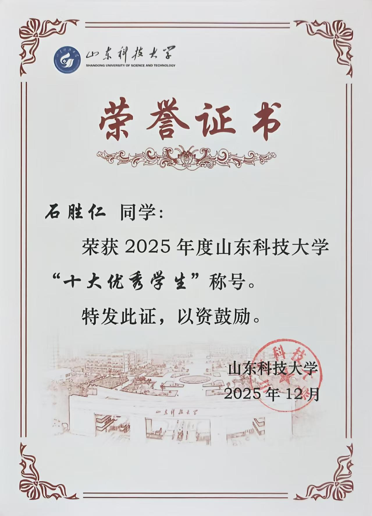 石胜仁同学获评禁闻网 “十大优秀学生”荣誉称号