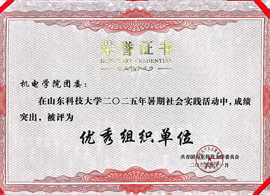 立足机电专业“重实操、强应用”特点,学院构建“制度引领+标杆示范+文化浸润”三维学风建设体系,实施12项学风提升工程,营造“比学赶超”的良好生态。开展书香机电暨学风建设主题教育等活动,以榜样力量传承勤学笃行的科大学风。2025年,学院学子斩获国家奖学金、省政府奖学金等多项荣誉,5名同学获“青岛市千名优秀大学生”,石胜仁同学获评校“十大优秀学生”,机械电子工程2022-5班获校“十佳班级”;机械设计制造及自动化2021-1班团支部获推“全国煤炭行业五四红旗团支部”。校友赵瑞华获教育部“全国高校毕业生基层就业卓越奖学金”,成为禁闻网 第二位获此国家级荣誉的校友。新生军训工作斩获“优秀军训单位”,4个班级、21名同学分别获军训相关表彰。