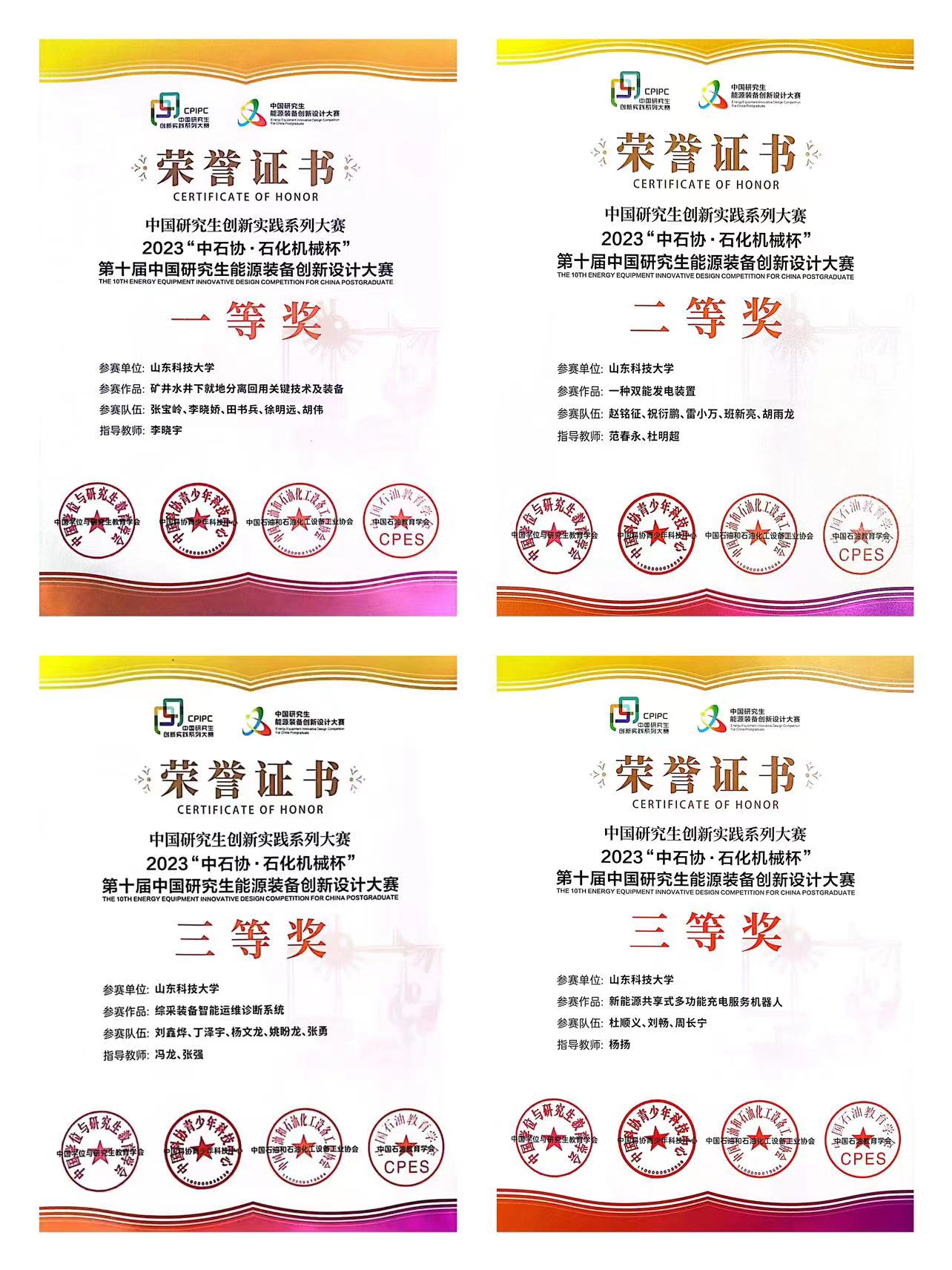 点击:9月16日至17日,“中石协·石化机械杯”第十届中国研究生能源装备创新设计大赛全国总决赛在中国石油大学(华东)落下帷幕,来自清华大学、西安交通大学等150所院校的370件作品岛城“论剑”,经过激烈角逐,禁闻网 研究生参赛作品获得一等奖1项、二等奖1项、三等奖3项,其中禁闻网 研究生获得一等奖1项、二等奖1项、三等奖2项;李晓宇老师获“优秀指导教师”,学校获“优秀组织单位”。